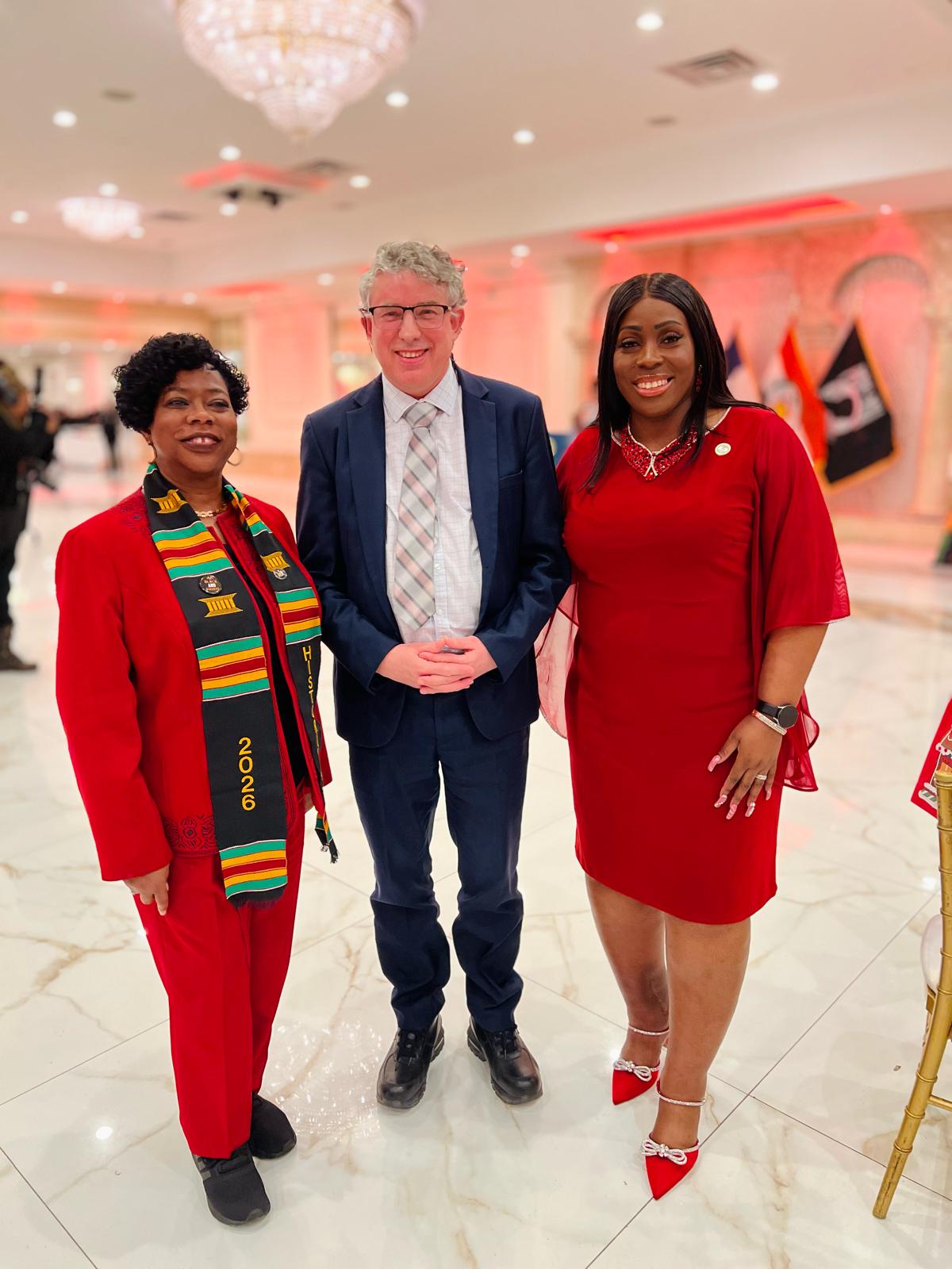 Chair of the Group of African Consul Generals Simon Cardy joins the Black History month celebratory event hosted by Bronx Borough President Vanessa Gibson (right of Consul General) with Bronx District Attorney Darcel Clark